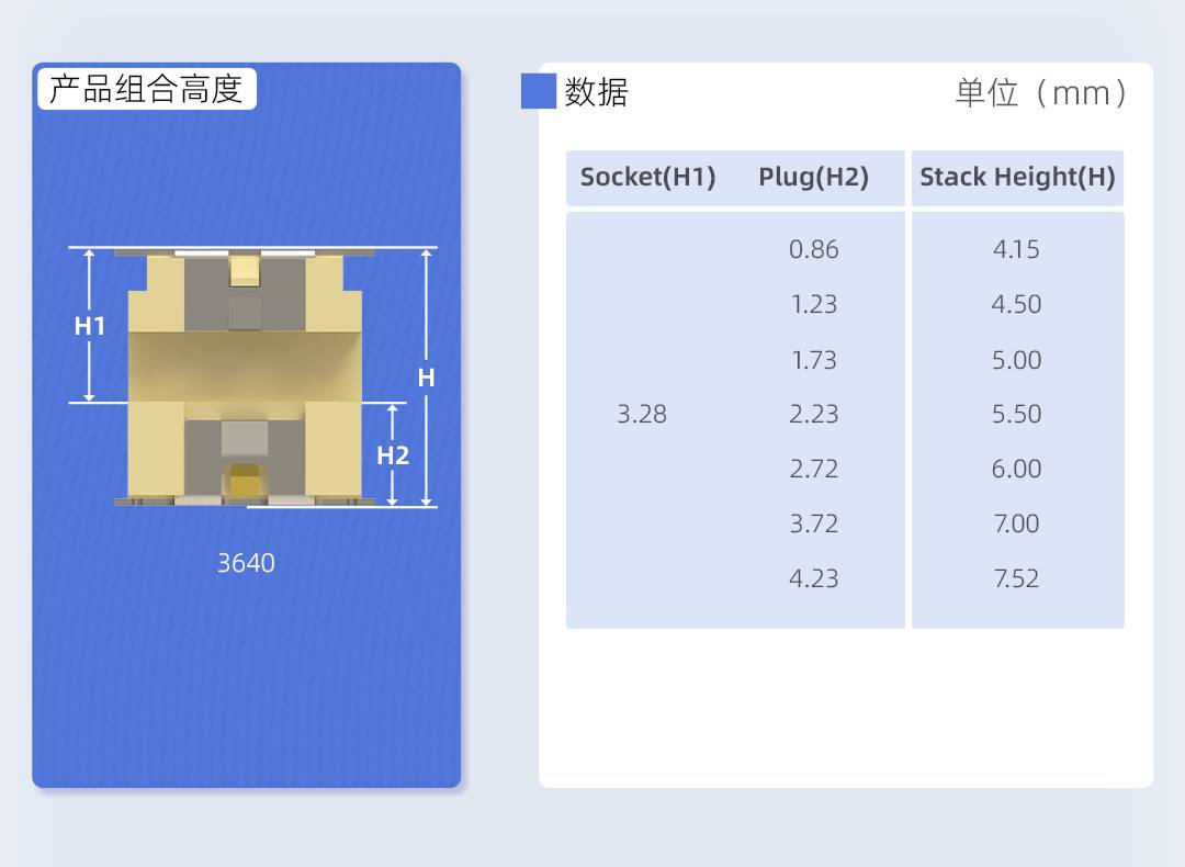 - 堆叠高度: 4.15~7.52mm;